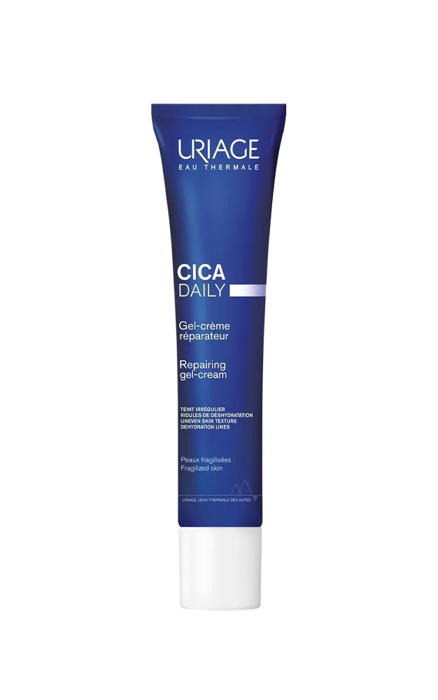 El Gel-Creme Reparador Uriage Bariéderm Cica Daily combina un potente complejo 10,5 % Thermal-Biótic (Agua Termal de Uriage + Inulina prebiótica) que refuerza la barrera cutánea y equilibra el microbioma. Junto con Centella Asiática, Ácido Hialurónico de alto y bajo peso molecular, y Pantenol (Vitamina B5), estimula la regeneración epidérmica, calma rojeces y marcas, y protege gracias al Cobre-Zinc purificante. Su textura gel-crema ultraligera es adecuada para todo tipo de pieles, incluso las sensibilizadas por agresiones diarias. Ideal para aplicar mañana y noche sobre la piel limpia, después del sérum, sin perfume y con alta tolerancia dermatológica